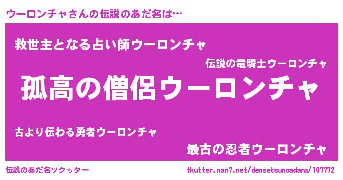 | 男性向けラノベタイトル風あだ名 | 『ウーロンチャスレイヤー』 |