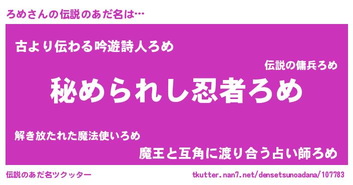 | 意味不明あだ名 | 『自称ろめ』『たけのこ科ろめ属』 |