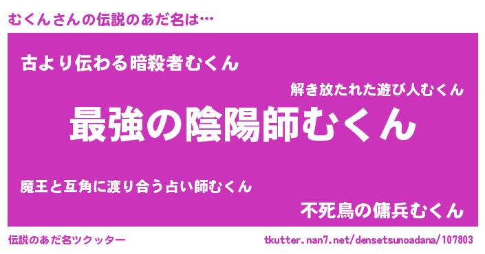 | ヒーロー風カッコイイあだ名 | 『究極戦士ムクン』『仮面ムクダー』 |