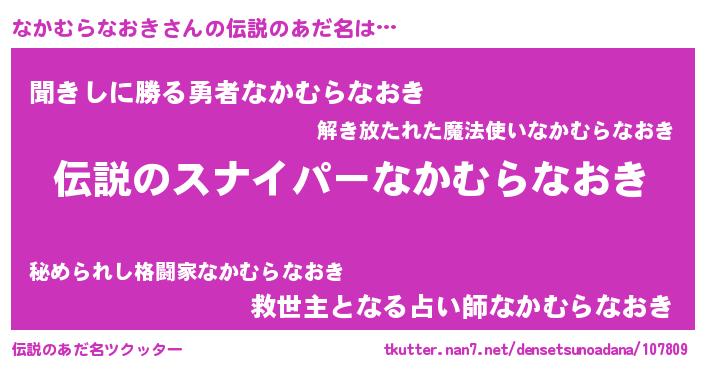 | 意味不明あだ名 | 『住所不定無職なかむらなおき(79歳)』 |