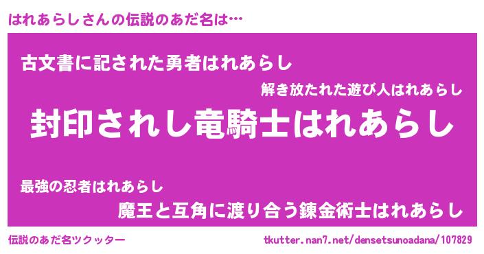 | ヒーロー風カッコイイあだ名 | 『スーパーハレアラシ』『仮面ハレダー』 |