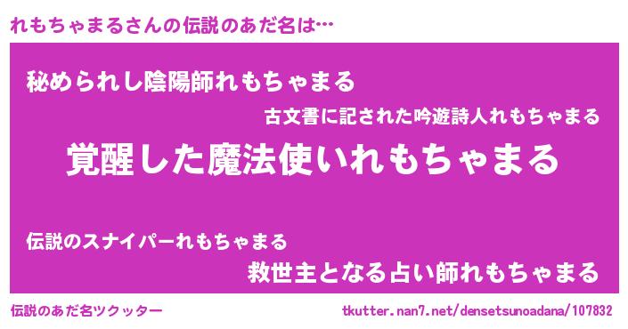 | 意味不明あだ名 | 『自称れもちゃまる』 |