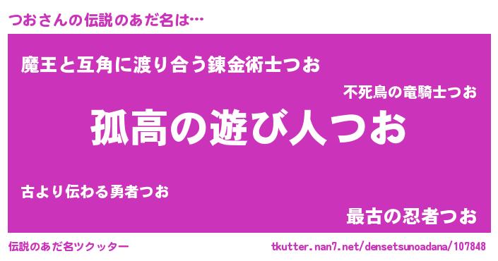 | ヒーロー風カッコイイあだ名 | 『超時空戦士ツオ』『銀牙騎士ツオ』 |