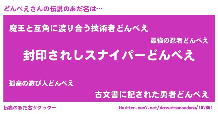 | ヘコむあだ名 | 『どんもー』『どんべえ(小並感)』 |