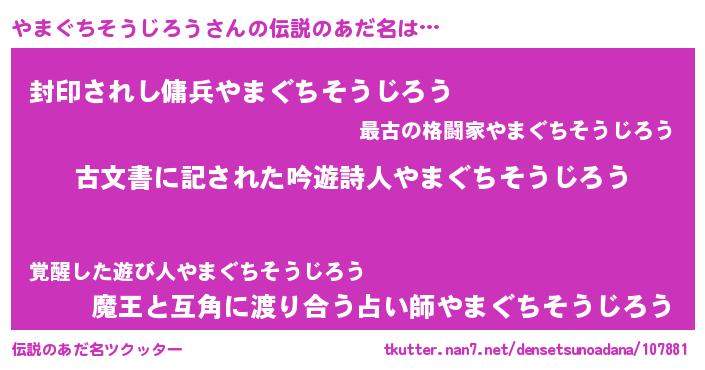 | ヘコむあだ名 | 『やまぐちそうじろう(小並感)』『なまこ酢』 |
