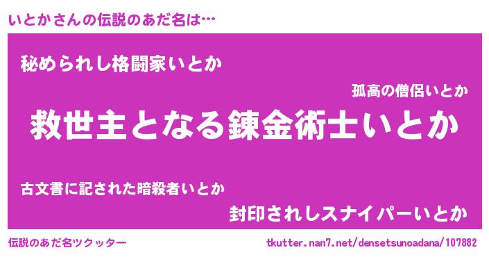 | ヒーロー風カッコイイあだ名 | 『仮面イトダー』『友情の使者いとか』 |