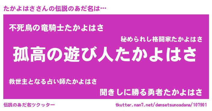 | 女子向けラノベタイトル風あだ名 | 『たかよはさは平凡を望む』 |