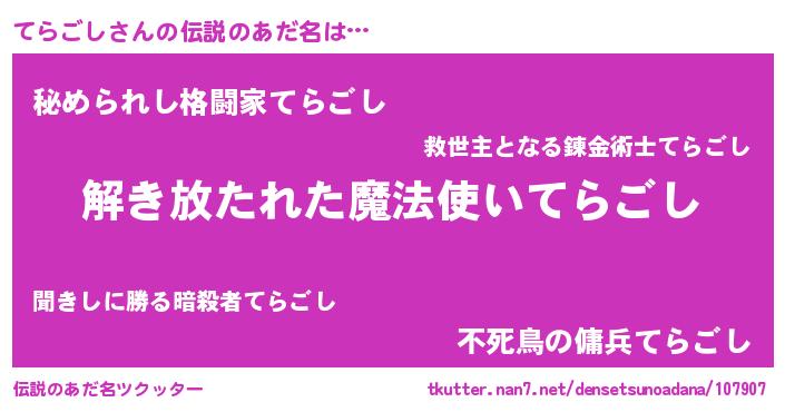 | 胡散臭い通販商品みたいなあだ名 | 『伝統あるサプリメント…その名も「てらごし」』 |