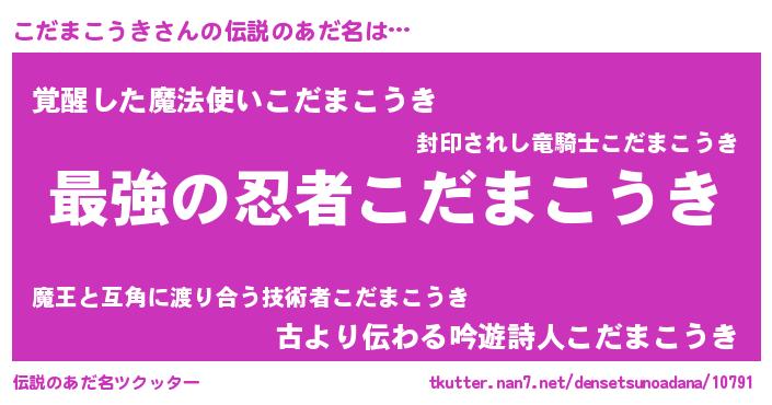 | ヒーロー風カッコイイあだ名 | 『仮面コダダー』『究極戦士コダマコウキ』 |