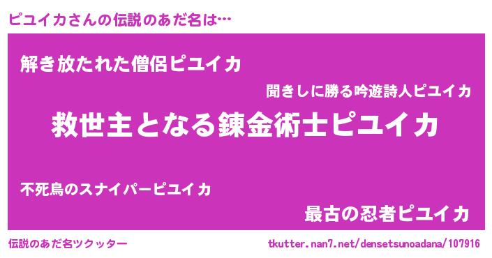 | ヒーロー風カッコイイあだ名 | 『究極戦士ピユイカ』『愛の使者ピユイカ』 |