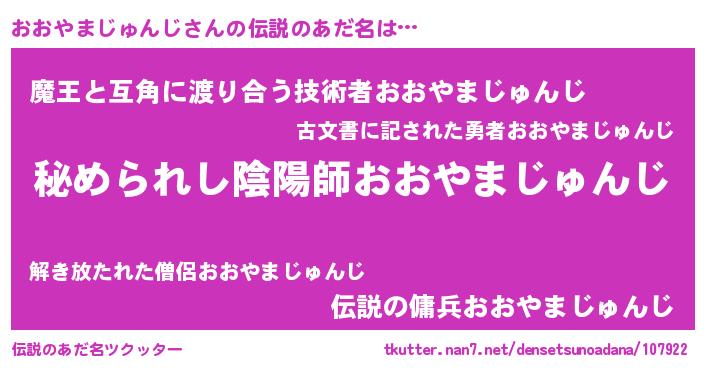 | ファンタジー風あだ名 | 『エターナルオオヤマジュンジー』 |
