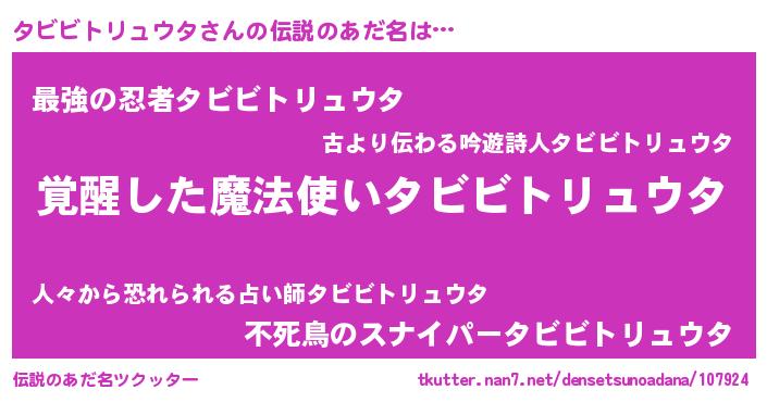| 女子向けラノベタイトル風あだ名 | 『闇のタビビトリュウタ』 |