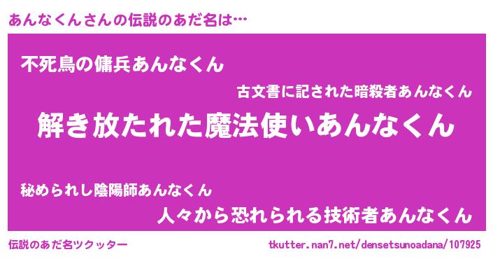 | ヒーロー風カッコイイあだ名 | 『幻影騎士アン』『スーパーアンナクン』 |