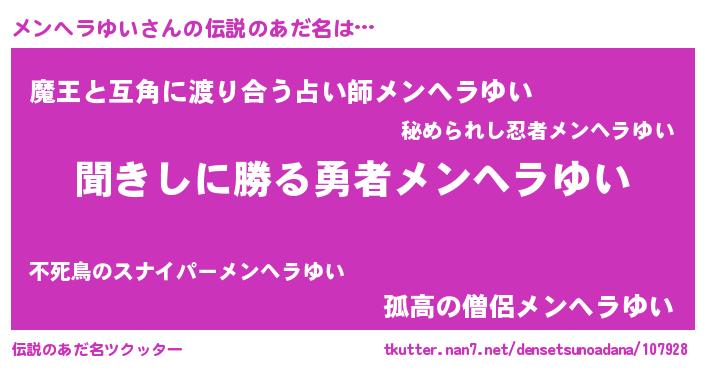 | 欧米人風あだ名 | 『ダルビッシュメンヘラゆい』 |