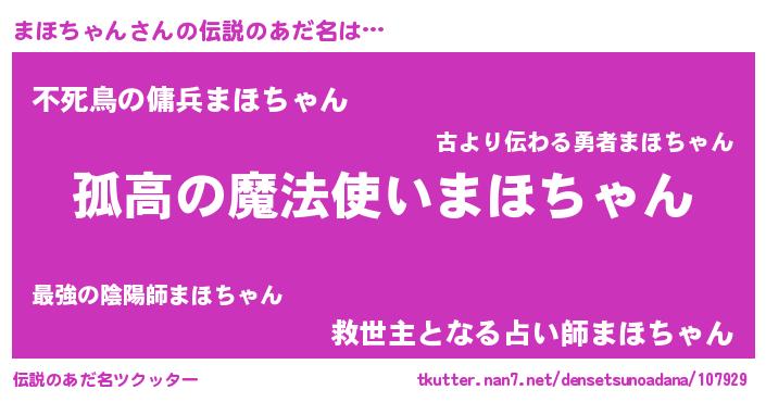 | 胡散臭い通販商品みたいなあだ名 | 『信頼と実績のサプリメント…その名も「まほちゃん」』 |