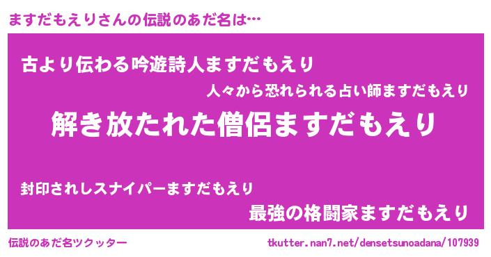 | ヒーロー風カッコイイあだ名 | 『幻影騎士マス』『ネオマスダモエリ』 |