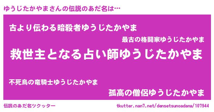 | ヘコむあだ名 | 『ゆうじたかやま(爆)』『ゆうを』 |