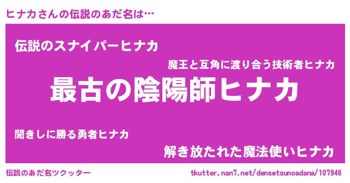 | ファンタジー風あだ名 | 『ヴァルヒナーナ』『エターナルヒナカー』 |