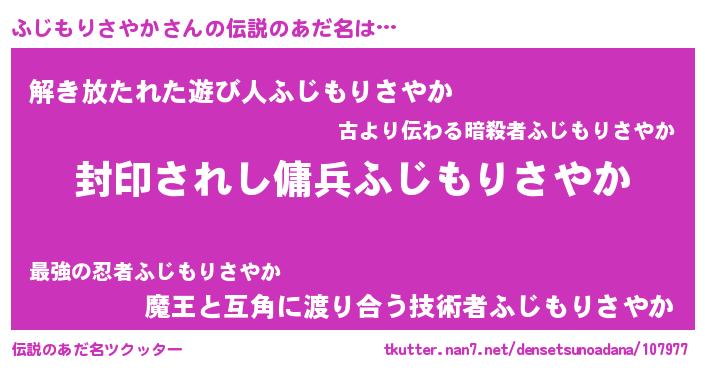 | 意味不明あだ名 | 『自称ふじもりさやか』 |