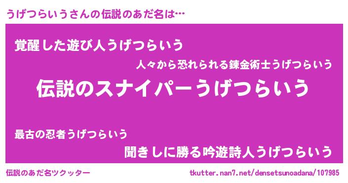 | 女子向けラノベタイトル風あだ名 | 『うげつらいうなんてお断りですっ。』 |