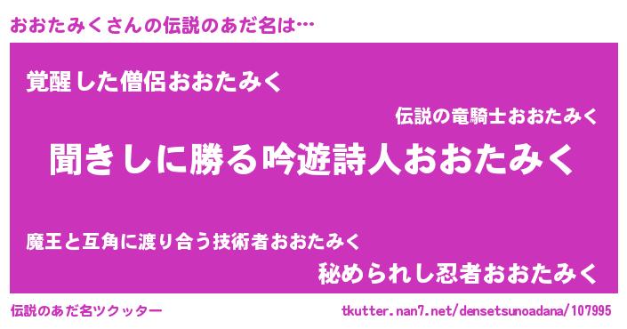 | 男性向けラノベタイトル風あだ名 | 『オオタミクスレイヤー』 |