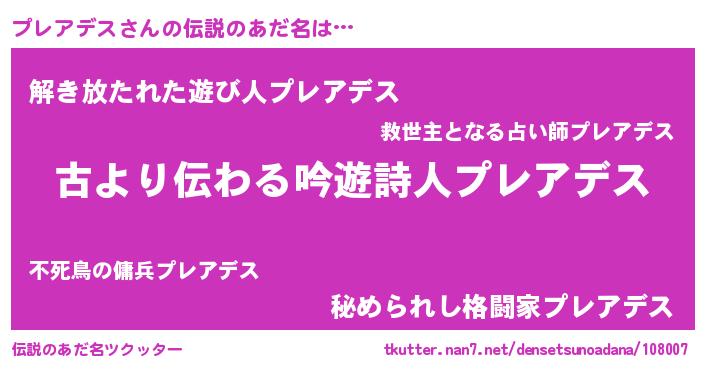 | ヒーロー風カッコイイあだ名 | 『ネオプレアデス』『幻影騎士プレ』 |