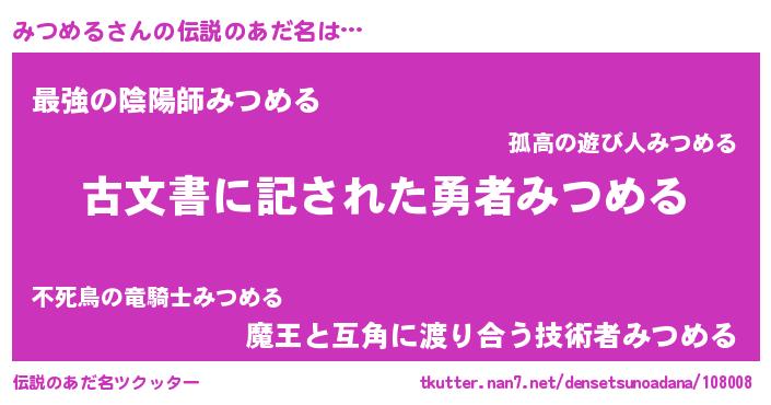 | ヒーロー風カッコイイあだ名 | 『ネオミツメル』『仮面ミツダー』 |