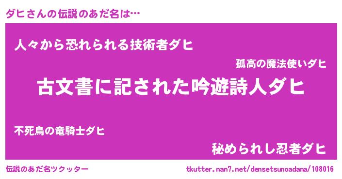 | ヒーロー風カッコイイあだ名 | 『ネオダヒ』『仮面ダヒダー』 |
