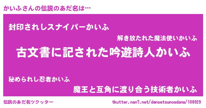 | 欧米人風あだ名 | 『ケンブリッジかいふ』『マイケルかいふ』 |