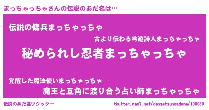 | 胡散臭い通販商品みたいなあだ名 | 『幸せが訪れる高級そうな壺…その名も「まっちゃっちゃ」』 |
