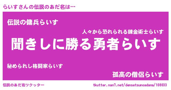 | ヘコむあだ名 | 『らいす(震え声)』『らいにゅー』 |