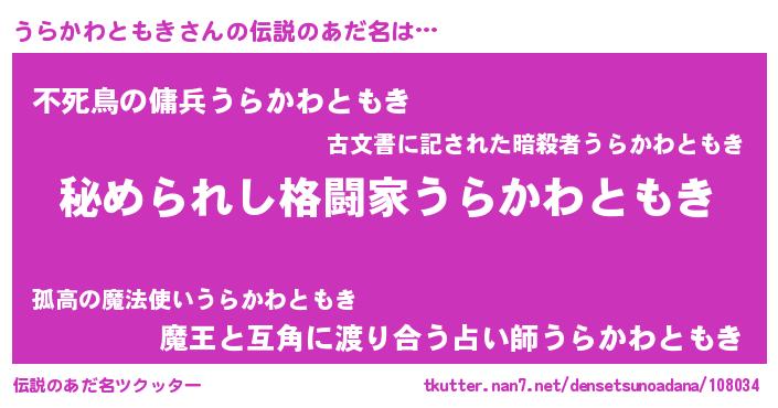 | ファンタジー風あだ名 | 『エターナルウラカワトモキー』 |