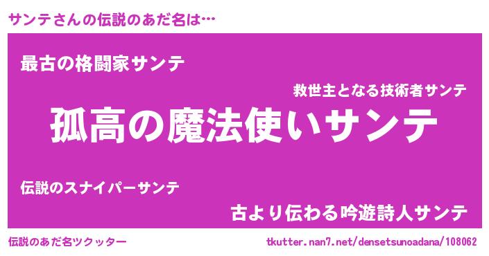 | 女子向けラノベタイトル風あだ名 | 『サンテは平凡を望む』『闇のサンテ』 |