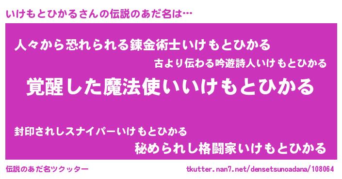 | 意味不明あだ名 | 『とにかく怪しいいけもとひかる』 |