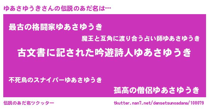 | 意味不明あだ名 | 『永久保存ゆあさゆうき』 |