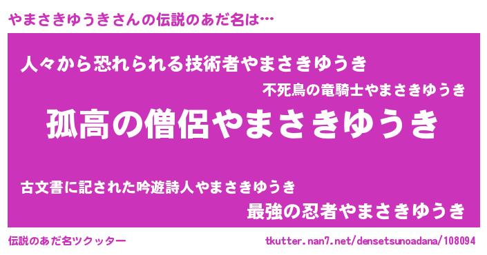 | 意味不明あだ名 | 『自称やまさきゆうき』 |
