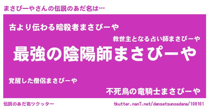 | ファンタジー風あだ名 | 『エターナルマサピーヤー』『マサフェル』 |