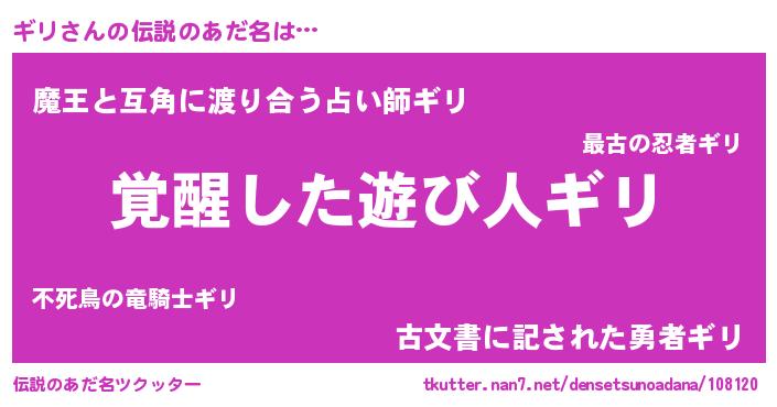 | ヒーロー風カッコイイあだ名 | 『天弓騎士ギリ』『慈愛の使者ギリ』 |