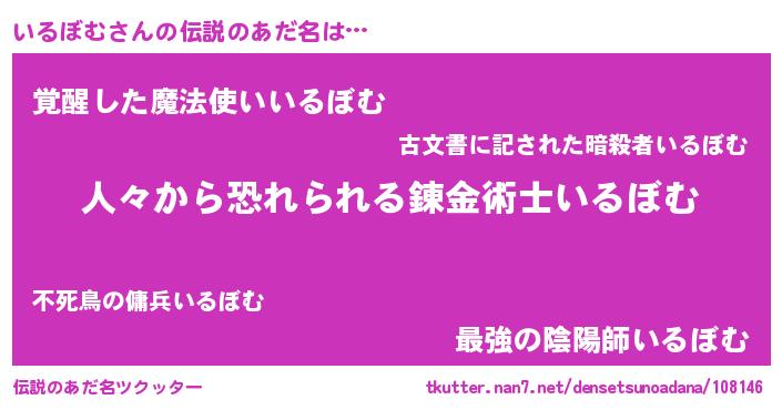 | ヒーロー風カッコイイあだ名 | 『仮面イルダー』『天空の使者いるぼむ』 |
