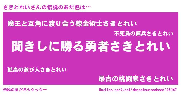 | 胡散臭い通販商品みたいなあだ名 | 『絶対に幸福をもたらす水素水…その名も「さきとれい」』 |