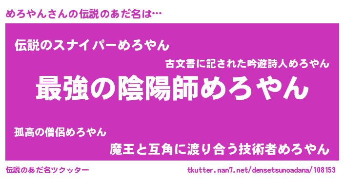 | ヘコむあだ名 | 『酢こんぶ』『めろもー』『めろお』 |