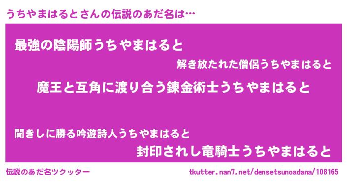| 男性向けラノベタイトル風あだ名 | 『うちやまはるとに滅ぼされるだけの簡単なお仕事です』 |