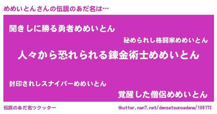 | ヒーロー風カッコイイあだ名 | 『正義の使者めめいとん』『仮面メメダー』 |