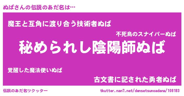 | 男性向けラノベタイトル風あだ名 | 『魔法科高校のぬば』 |