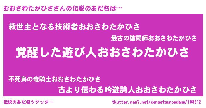 | 肩書あだ名 | 『おおさわたかひさ中将』 |