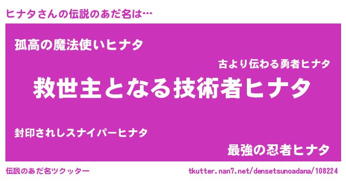 | 男性向けラノベタイトル風あだ名 | 『ヒナタに滅ぼされるだけの簡単なお仕事です』 |