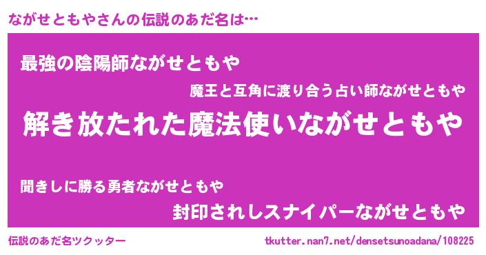 | 男性向けラノベタイトル風あだ名 | 『転生したらながせともやだった件』 |