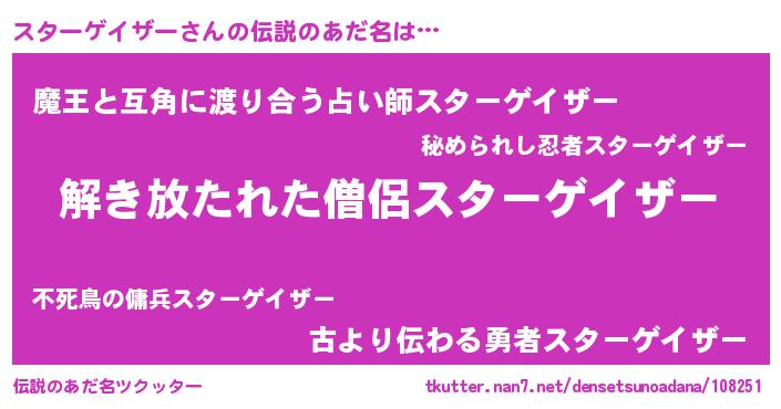 | ヒーロー風カッコイイあだ名 | 『仮面スタダー』『銀牙騎士スタ』 |