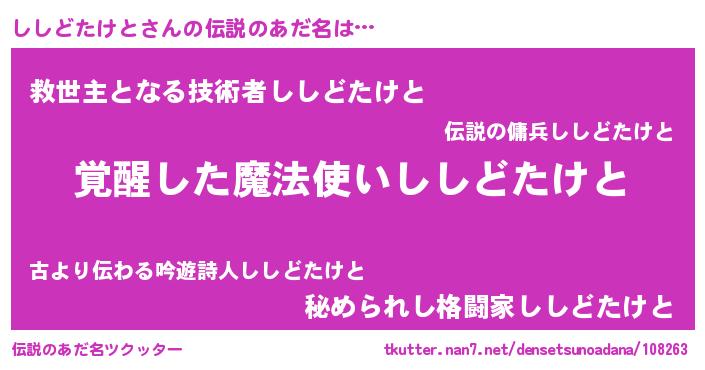 | 意味不明あだ名 | 『とにかく怪しいししどたけと』 |