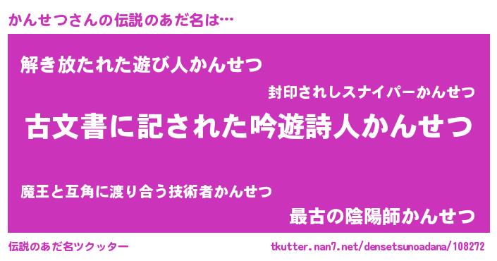 | ヘコむあだ名 | 『かんせつ(小並感)』『かんっちょ』 |